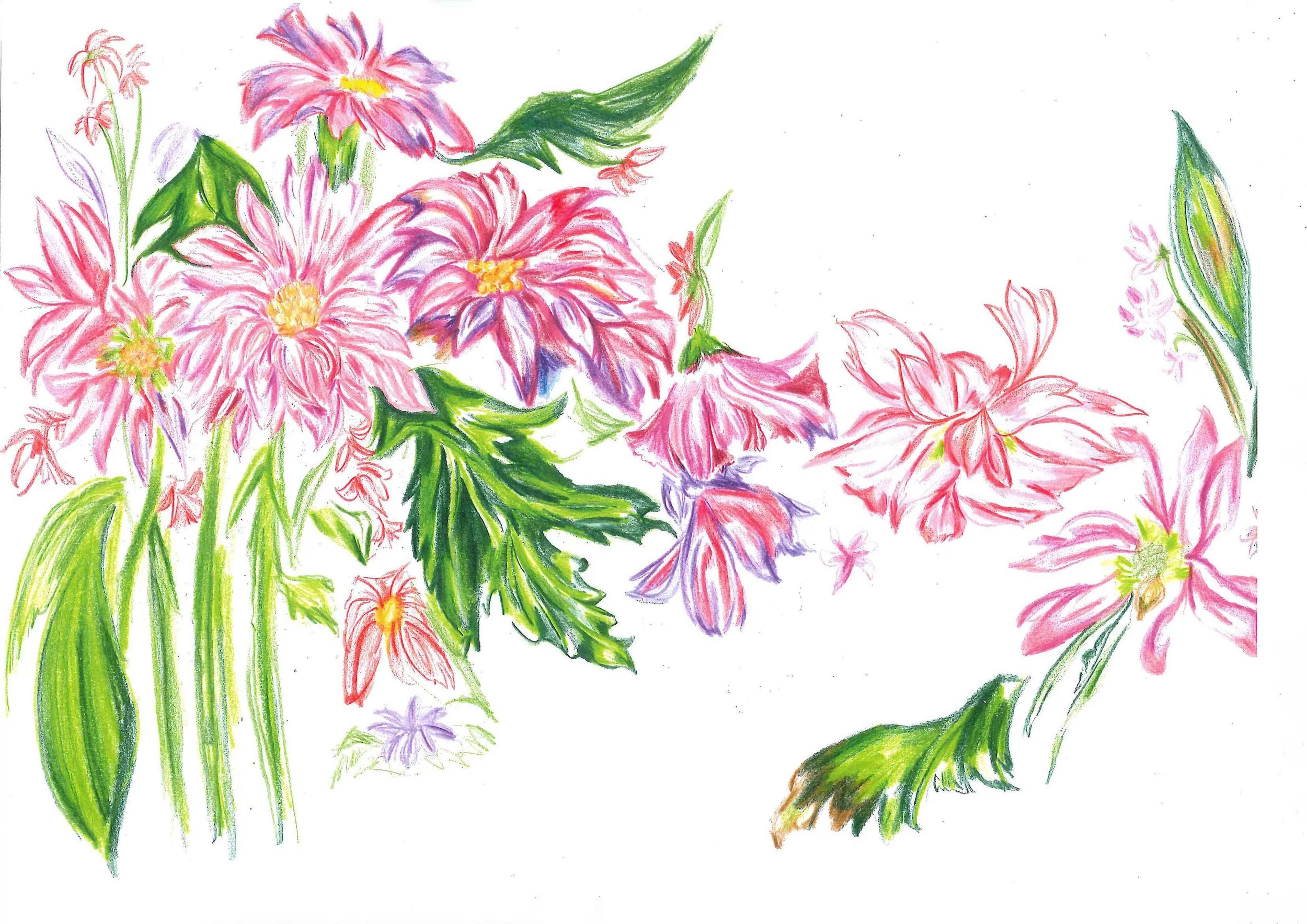 Below showcases a sequence of flowers sketched using Crayola colouring pencils. Exhibiting the changing states which emerge over a period of time. The flowers renew their appearance ageing from fresh to frail.